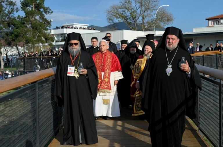 “Existe una hermandad universal independiente de la etnia, la nacionalidad, la religión o la opinión”, destacó León rodeado de los patriarcas ortodoxos y otras ramas del cristianismo.