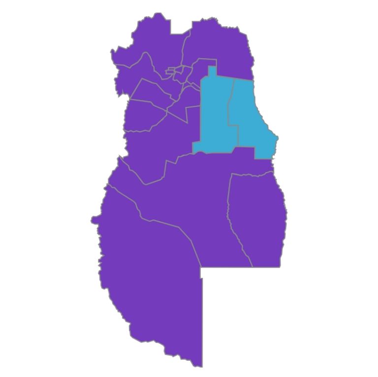 Esos dos municipios son Santa Rosa y La Paz. Las únicas dos comunas del mapa que aparecen pintadas de celeste en una provincia con clara preponderancia del violeta.