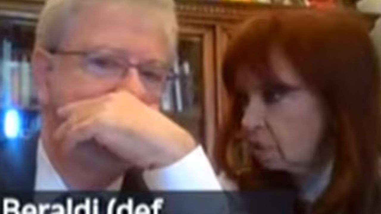 Entonces la ex presidenta se mostró en la imagen junto a su abogado Carlos Beraldi desde el departamento de San José 1111, donde cumple arresto domiciliario de seis años por administración fraudulenta en el caso Vialidad.