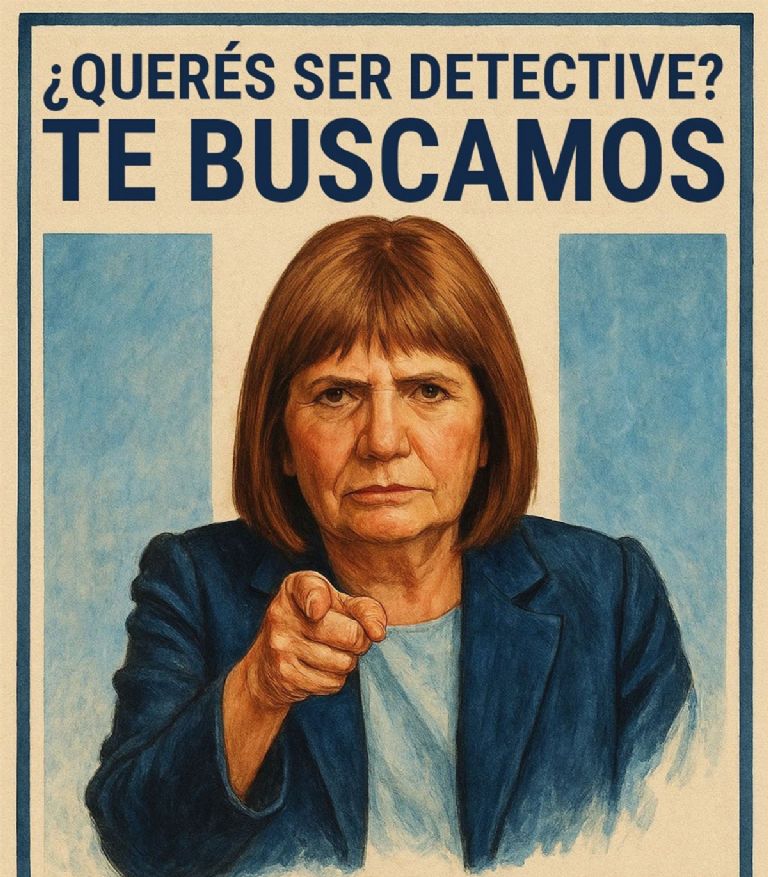 “Querés ser detective? Te buscamos para el DFI”, sostuvo agregando pero con la imagen en dibujo de Bullrich quien señala y deja en primer plano su dedo índice, imagen muy similar a la del Tío Sam.