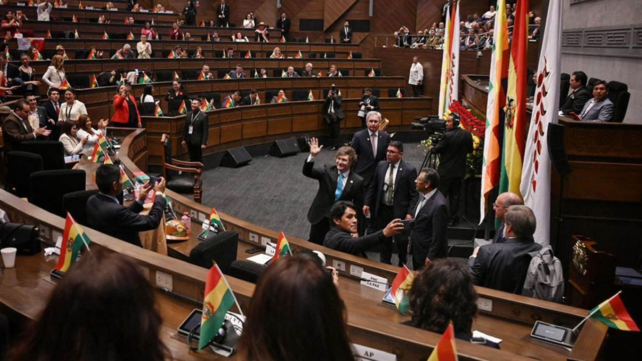 El presidente Javier Milei fue ovacionado en la Asamblea Legislativa Plurinacional de Bolivia durante la ceremonia de asunción del presidente electo, Rodrigo Paz Pereira.