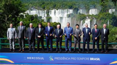 Todos los mandatarios del Mercosur y aliados con las Cataratas de fondo