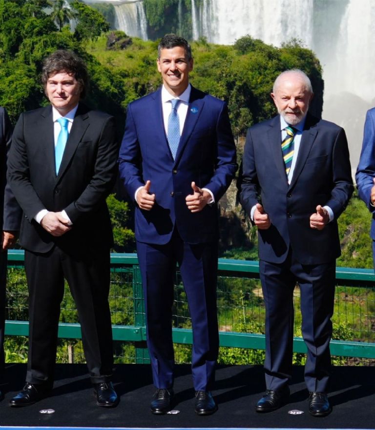 Durante su presentación en la cumbre que se realiza en la ciudad brasileña de Foz de Iguazú, Milei agradeció el recibimiento por parte de Brasil, saludó a sus pares Santiago Peña (Paraguay), Yamandú Orsi (Uruguay) y José Raúl Mulino (Panamá), al tiempo que volvió a felicitar al pueblo chileno por “la jornada ejemplar” en la que resultó mandatario electo José Antonio Kast, a quien definió como “mi gran amigo”.