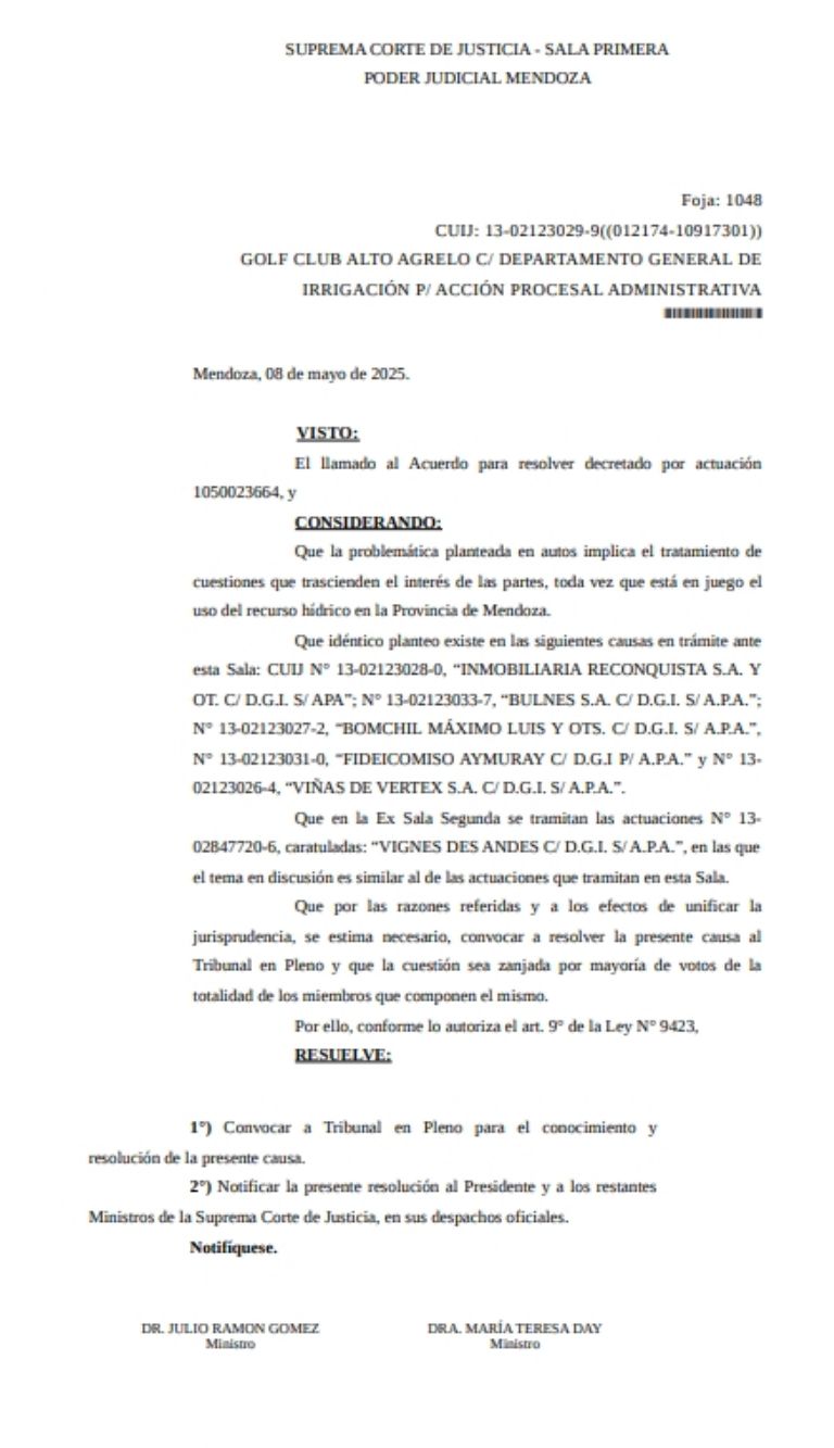 Este lunes se dieron por notificados los jueces del máximo tribunal para resolver en pleno el destino de 21 pozos de agua otorgados en el gobierno de Celso Jaque. Las similitudes con el caso por el que desde la oposición piden el Jury de Enjuiciamiento contra Sergio Marinelli.