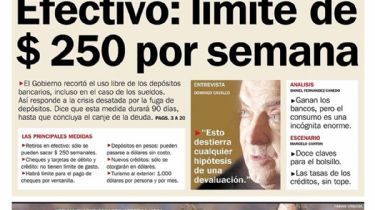 El gobierno nacional no podía detener la fuga de dólares y se vio obligado a sancionar una ley que garantizara la intangibilidad de los depósitos a fines de agosto, pero ya era tarde. Si en setiembre los depósitos habían logrado recuperarse y subir en 1.600 millones, en octubre cayeron en cerca de 3.000 millones, mientras que en noviembre fue aún peor: se perdieron 5.500 millones en todo el sistema. Tan solo durante el viernes 30 de noviembre dejaron los bancos 2.500 millones de dólares.