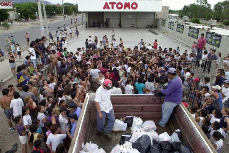 El jueves 13 de diciembre de 2001 se produjo el primer saqueo en Mendoza, un grupo de personas llegó al Atomo de Avellaneda y Capilla de Nieve en Guaymallén. En total fueron 25 saqueos en 5 días, en varios la policía tuvo que disparar balas de goma para frenar los intentos de la gente para ingresar a los supermercados. “Creo que existe una realidad socioeconómica muy compleja que es caldo de cultivo. Pero si hubo conductas violentas es porque fueron reactivadas”, decía el gobernador Roberto Iglesias.