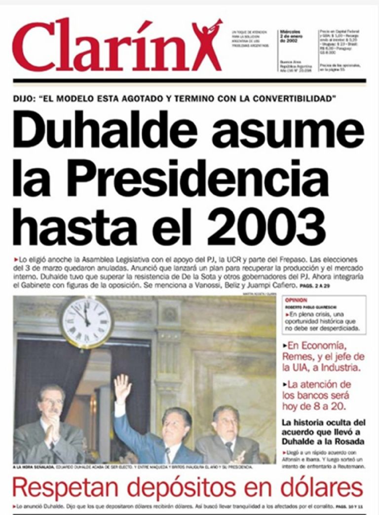 Finalmente Eduardo Duhalde asumió la presidencia el 2 de enero de 2002 y devaluó la moneda.
