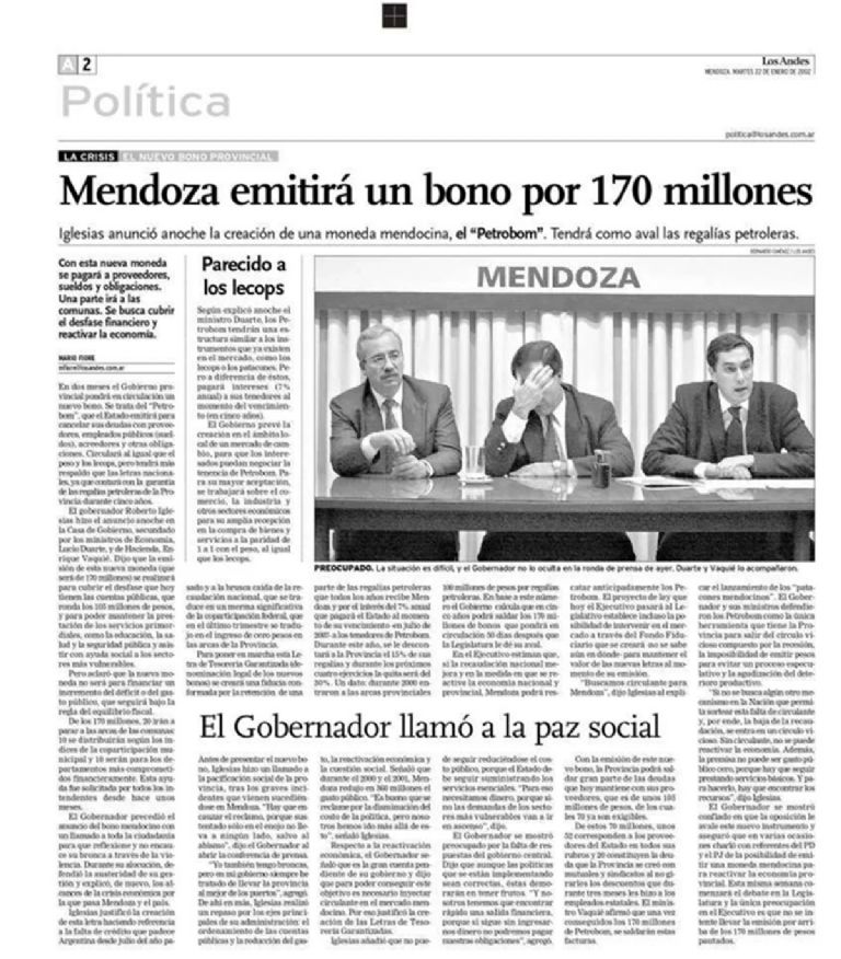 Asfixiado por la crisis, el gobierno de Mendoza decidió aceptar Lecops en pago de coparticipación.