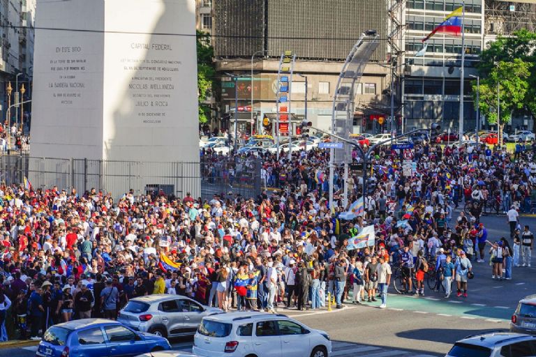 “Llevo seis años esperando este momento para poder volver a abrazar a mi madre”, relató entre lágrimas uno de los manifestantes. Mientras los autos que circulaban por la Avenida 9 de Julio acompañaban con bocinazos, en la Plaza de la República se escuchaban los acordes del himno nacional venezolano y gritos de apoyo a la operación de Estados Unidos.