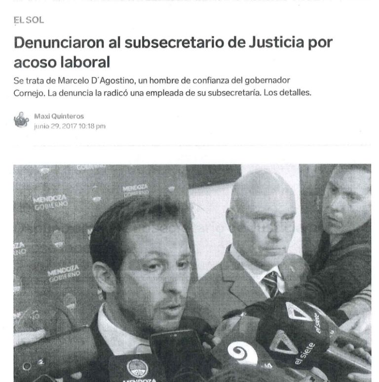 Ese hecho se registró en junio del 2017, mucho tiempo antes de que Marcelo D'Agostino iniciara una relación con la mujer que hoy lo acusa de violencia física y abuso sexual. Fue tal el escándalo que se generó en 2017 que el Ministerio de Gobierno envió un comunicado afirmando que el subsecretario se había puesto espontáneamente a disposición de la justicia "para realizar las declaraciones necesarias y despejar cualquier duda". El ministro de Gobierno en junio del 2017 era el actual presidente de la Suprema Corte, Dalmiro Garay. El tiempo pasó y Marcelo D'Agostino siguió ejerciendo su cargo.