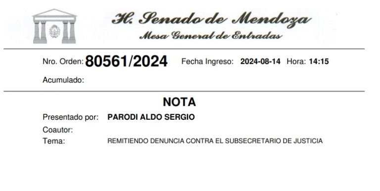 Sin embargo, otra señal de alarma se presentó en 2024 en la Legislatura de Mendoza cuando un ciudadano acudió con un expediente advirtiendo posibles hechos de violencia del funcionario contra otra mujer que fue su pareja. Al no haber denuncia de la presunta víctima, ese caso tampoco avanzó.