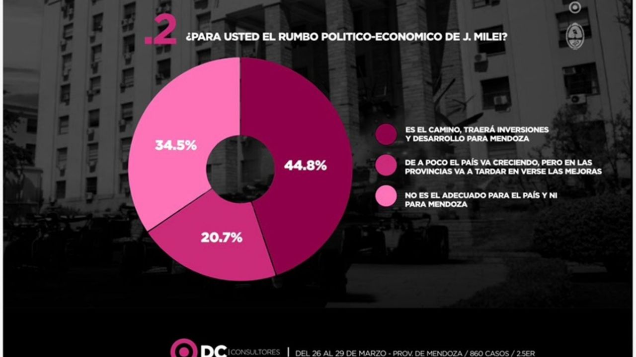 Al revés de Alfredo Cornejo, la gestión Milei es valorada por los mendocinos consultados. El 44,8% dice que es el cambio que traerá inversiones y desarrollo para Mendoza, el 34,5% que no es el adecuado para el país y el 20,7% que de a poco el país va creciendo y que en las provincias tardará un poco más en verse las ventajas.