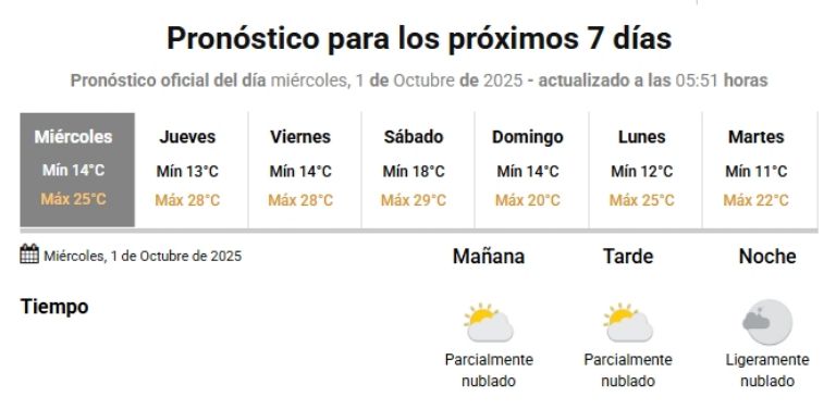 La máxima pronosticada es de 25°, instalando un ambiente plenamente primaveral en el llano. Un factor crucial a considerar serán los vientos moderados a algo fuertes que soplarán predominantemente desde el sector sur a lo largo del día.