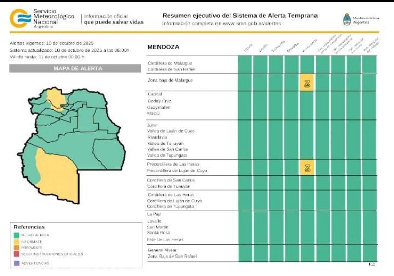 El SMN pone especial atención en la zona cordillerana. Hacia la noche del viernes, se espera un desmejoramiento en las condiciones del tiempo en la alta montaña, un factor clave para quienes planeen cruces o excursiones a esa área.