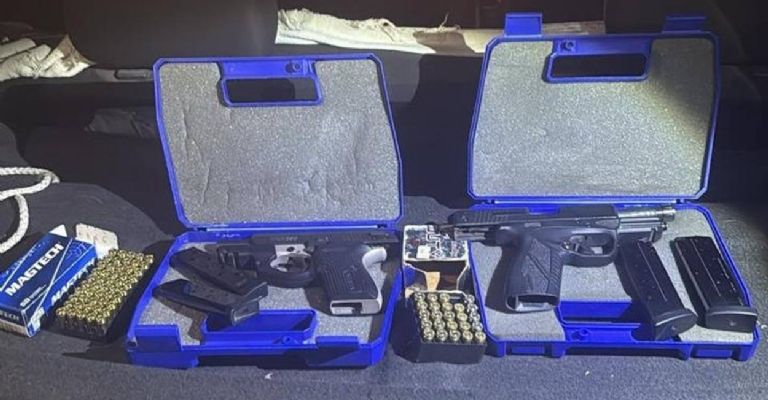 El hilo conductor de la investigación llevó a la policía a interceptar una Ford Ecosport gris. Dentro iban Diego Hernán Cardo y Guido Cuello y transportaban en una mochila un arsenal ilegal: dos pistolas Bersa, cargadores y 74 municiones intactas.