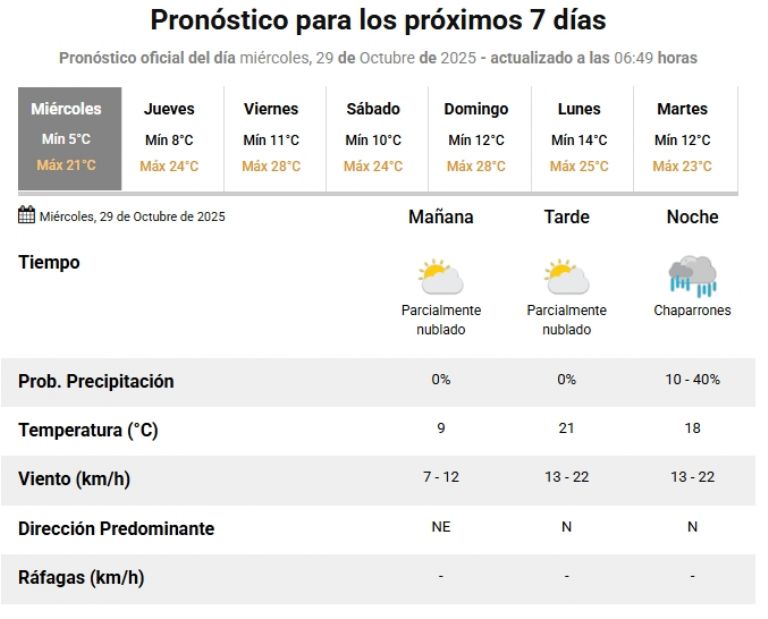 La clave del día es la importante amplitud térmica. A pesar del agradable clima vespertino, el SMN advierte sobre la presencia de heladas parciales durante las primeras horas de la mañana, un factor que requiere especial atención por parte de la población y, particularmente, del sector agrícola.