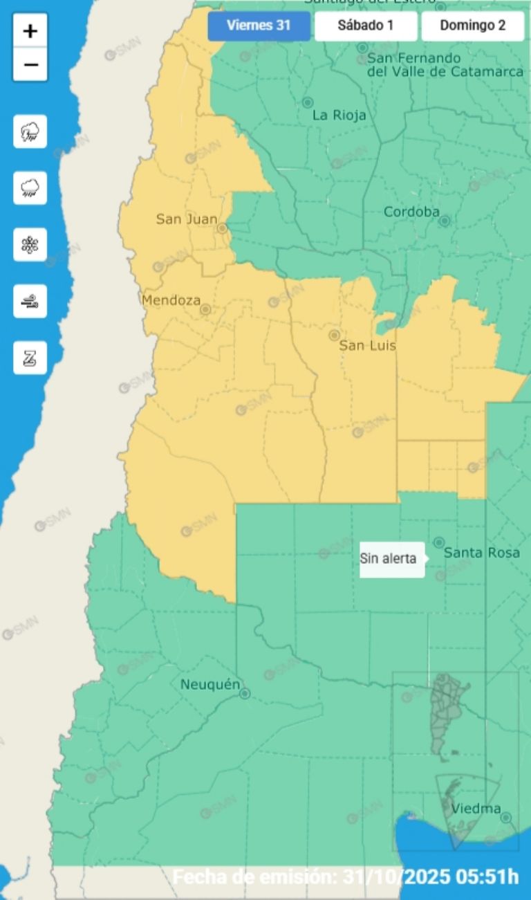 Octubre se despide con un panorama meteorológico complejo y con alertas meteorológicas en todo el territoria de Mendoza. Según el pronóstico y las alertas emitidas por el Servicio Meteorológico Nacional (SMN), se espera una combinación de condiciones que requerirán especial atención por parte de los habitantes de la región.
