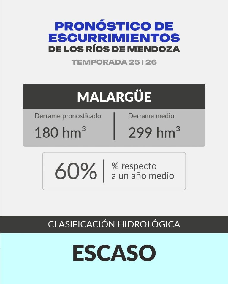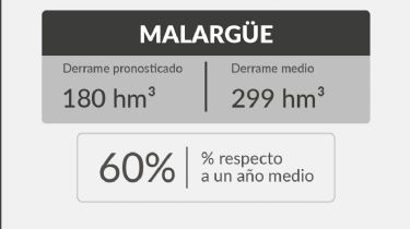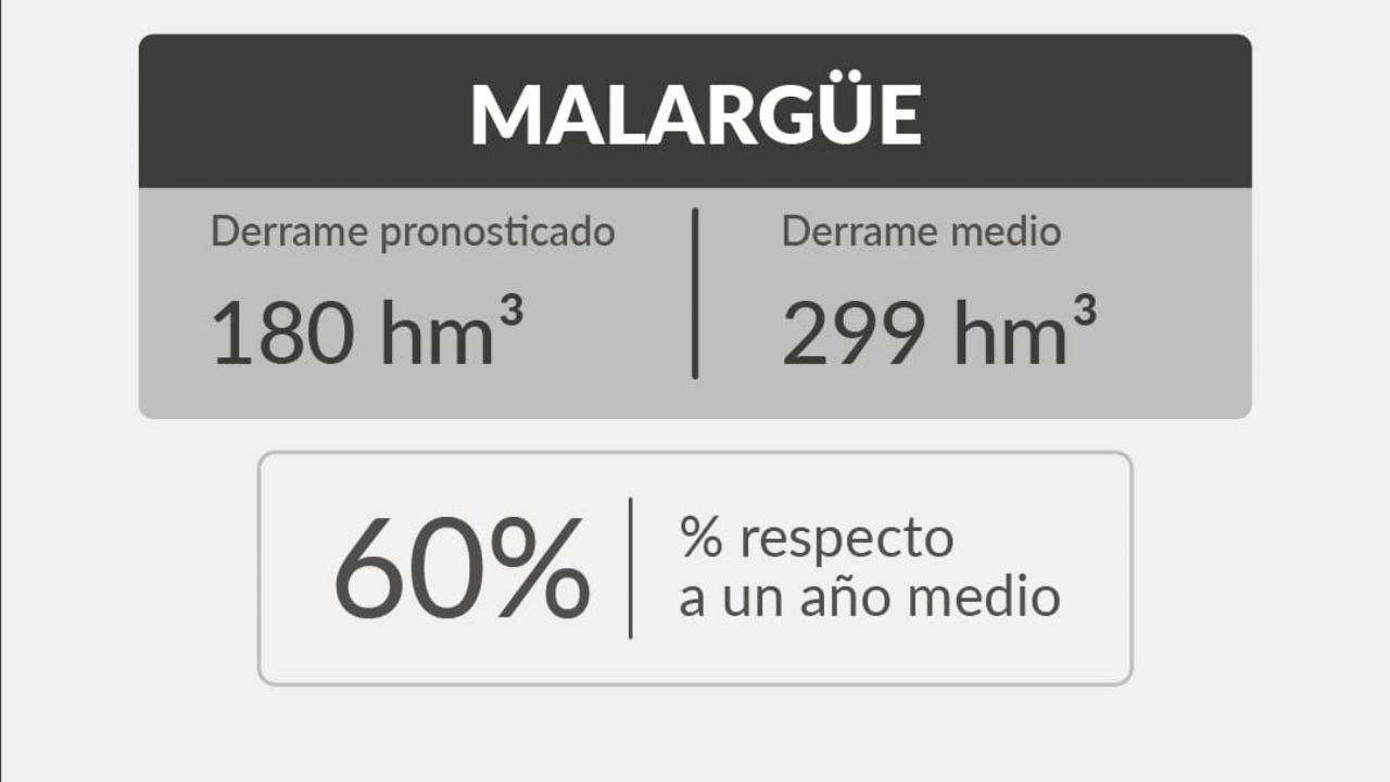 Finalmente el río Malargüe estará con 180 hm3, el 60% de los 299 hm3 promedio quedando con un nivel de sequía hidrológica escasa.