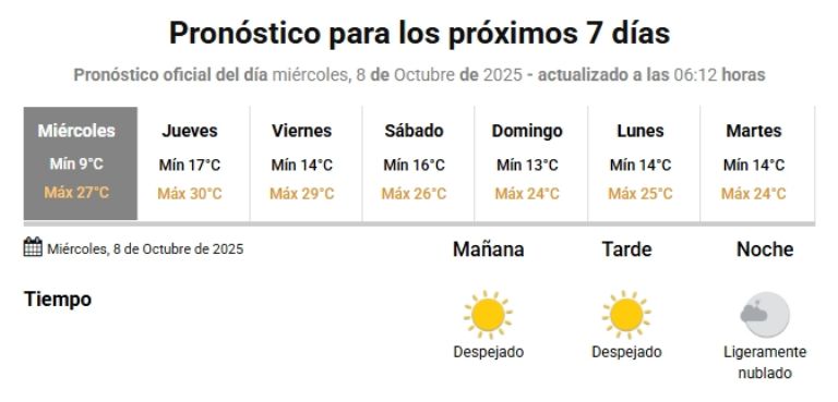 Sin embargo, el panorama cambiará drásticamente con el avance del día, proyectándose una temperatura máxima que alcanzará o superará los 27° a 28° en el llano. El cielo se mantendrá mayormente despejado a lo largo de toda la tarde, sin probabilidad alguna de precipitaciones. Los vientos serán leves, predominando del sector norte y noreste, lo que contribuye al sostenido aumento térmico.