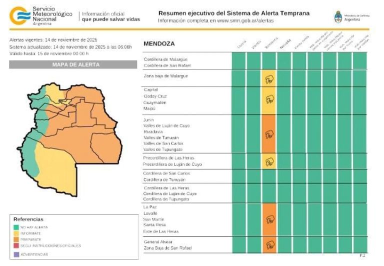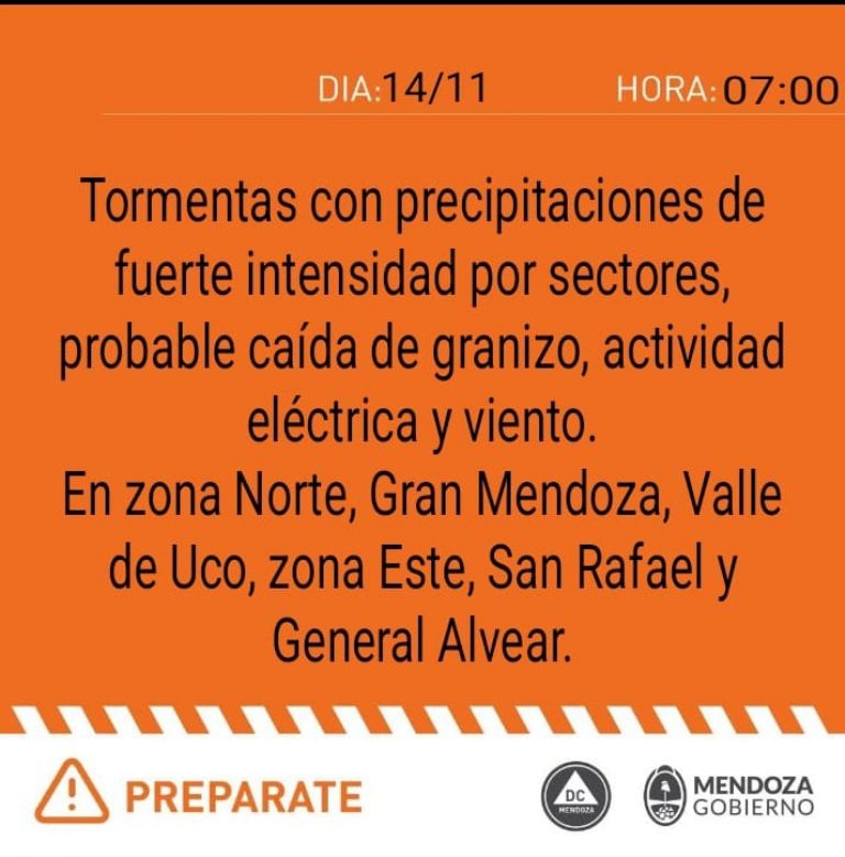 El calor se mantendrá intenso este viernes en Mendoza, pero el Servicio Meteorológico Nacional (SMN) activó un sistema de alertas por tormentas que abarca casi toda la provincia, elevando la advertencia a nivel naranja para varias zonas.
