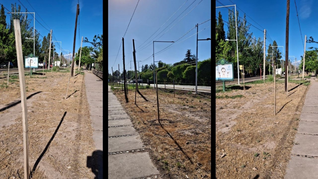 Los vecinos de la calle Almirante Brown (Luján de Cuyo) mostraron imágenes que son bastante irónicas y contundentes. Se trata de una hilera de árboles plantados hace poco que se han secado, justo frente a la Facultad de Ciencias Agrarias (UNCuyo).