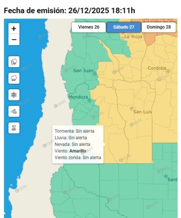 Según lo anunciado en el pronóstico del tiempo, en el último fin de semana del año mendocinos y turistas vivirán dos jornadas calurosas. Además, el SMN lanzó una alerta amarilla para la provincia.