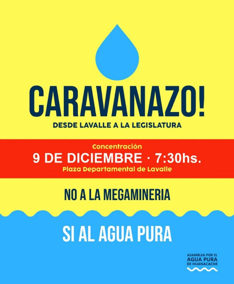 Definieron juntarse en la intersección de Ruta 7 y Avenida Eva Perón a las 8:30 el martes 9, para llegar hasta la Legislatura y unirse a los otros grupos de distintos departamentos que también han manifestado su oposición al avance de la minería y el apoyo a la Gesta Libertadora por el Agua que se hará en la Legislatura.