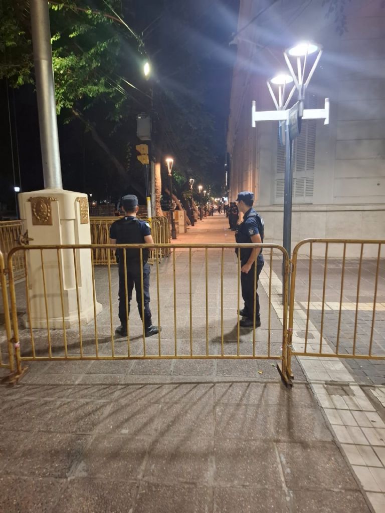 Del otro lado de la Plaza, por calle Patricias, pocos policías se veían en el exterior de la Legislatura y era recurrente el paso de patrulleros.