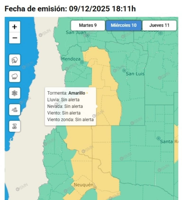 En tanto, el Servicio Meteorológico Nacional lanzó una alerta amarilla por tormentas para el miércoles en el Este y Sur de la provincia.