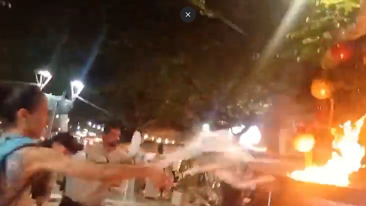 Además, adjuntó un video del momento en el que árbol se prende fuego. Sin embargo hay otro video en las redes sociales, un video más largo, donde se puede ver que son los propios ambientalistas quienes apagan el fuego.
