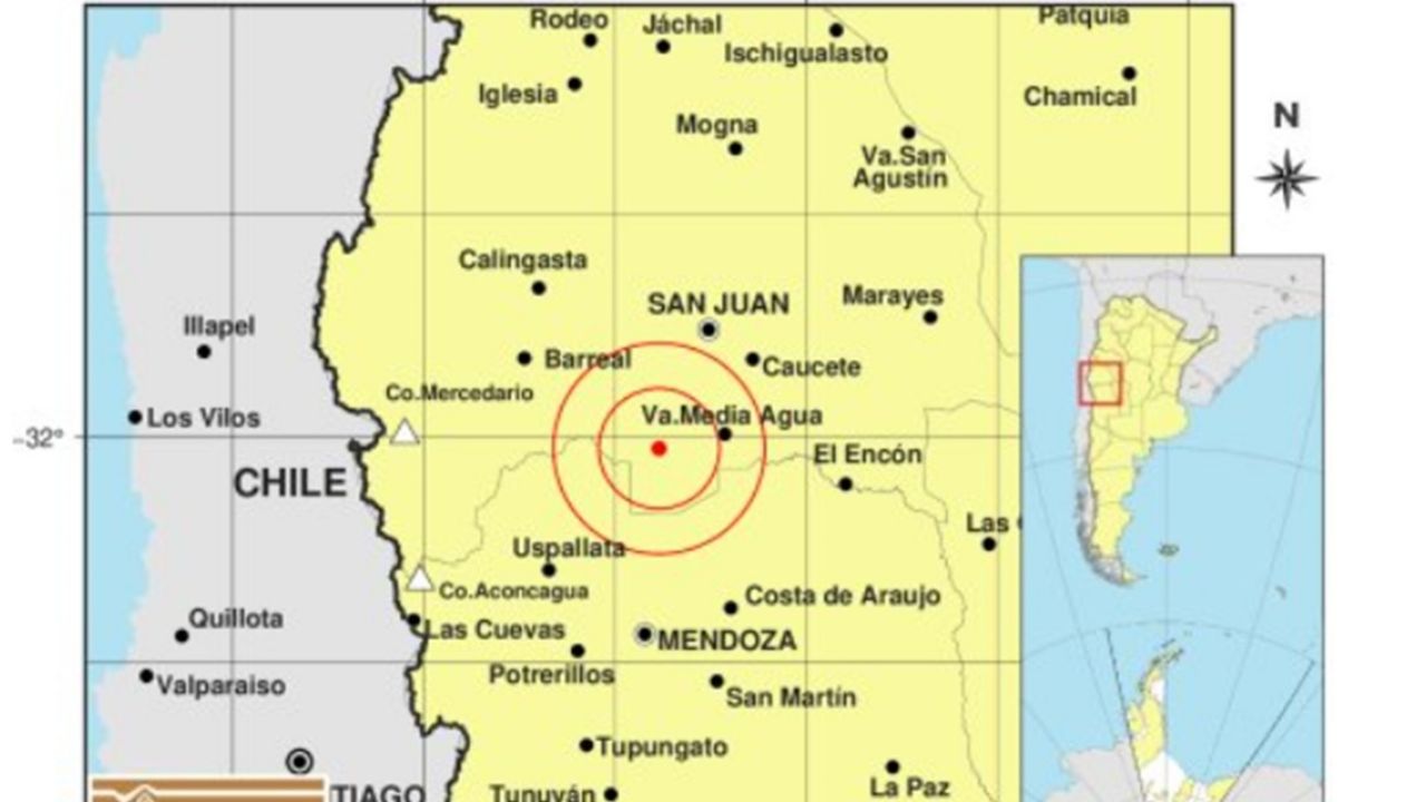 Según informó el Instituto Nacional de Prevención Sísmica (INPRES), el temblor tuvo epicentro a 35 kilómetros al Sur de San Juan, 91 kilómetros al Norte de Mendoza y a 34 kilómetros al Oeste de Media Agua.