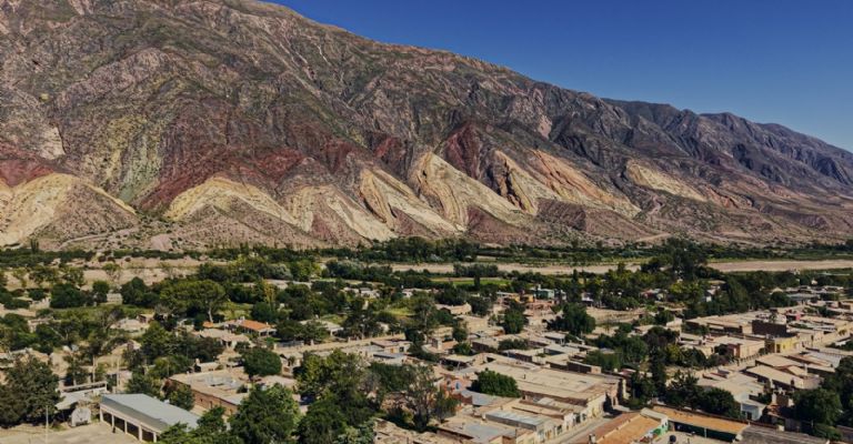 Con una población de unos 3.500 habitantes, este pintoresco pueblo conjuga la fuerza de las tradiciones ancestrales con una naturaleza imponente, dada por la Paleta del Pintor, una espectacular formación montañosa multicolor atravesada por el río Grande que puede verse desde distintos ángulos del pueblo.