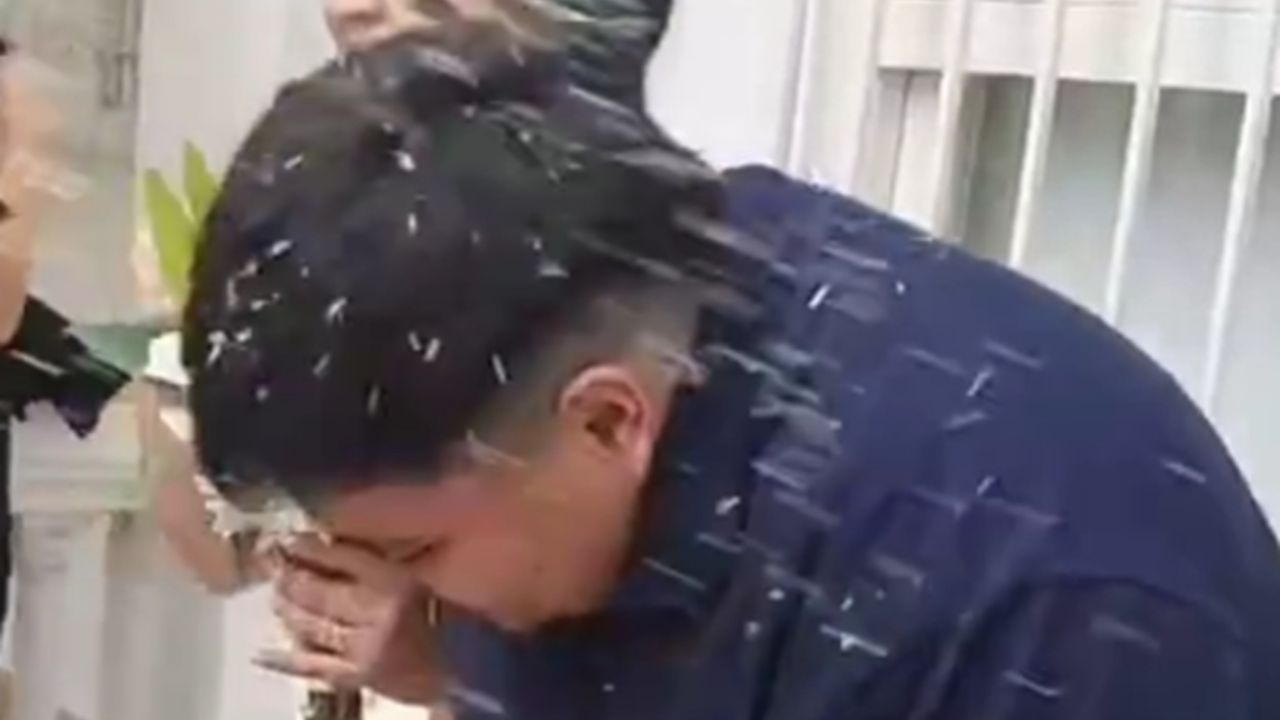 Le tiraron arroz a la salida del registro civil y terminó en urgencias